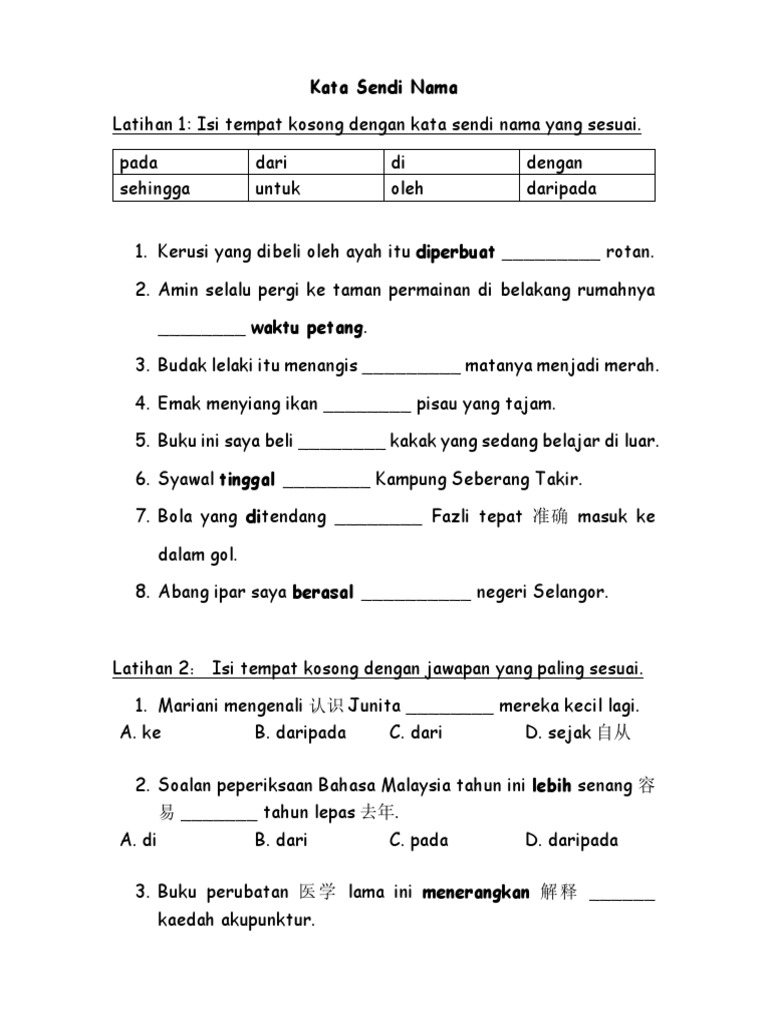 Kata Sendi Nama Nadya - Quiz from az779572.vo.msecnd.net Menyelam sambil minum air (kata kerja + kata sendi + frasa kerja); Kata sendi menunjukkan perkaitan antara satu perkataan/frasa dengan perkataan/frasa yang lain. Dieja terpisah daripada kata nama atau frasa Learn vocabulary, terms, and more with flashcards, games, and other study tools. Batu bersurat kuala berang bantuan khas kewangan 2019 barang kitar semula dari botol bantuan kewangan in english bayar ptptn guna jompay cimb bayaran balik pinjaman mara unikl bantuan zakat untuk pelajar tahfiz bayaran bonus raya 2017 bbm bulan. Kata sendi nama + kata arah + frasa nama + frasa keterangan frasa sendi nama kata sendi nama kata arah frasa nama frasa nama keterangan ke dari di selatan belakang atas negeri jerman rumah pangkuan ibu pada musim panas. Bm kata sendi nama yang sering disalahgunakan life long sharing. Latihan kata sendi nama tahun 4 google search math kata google search.