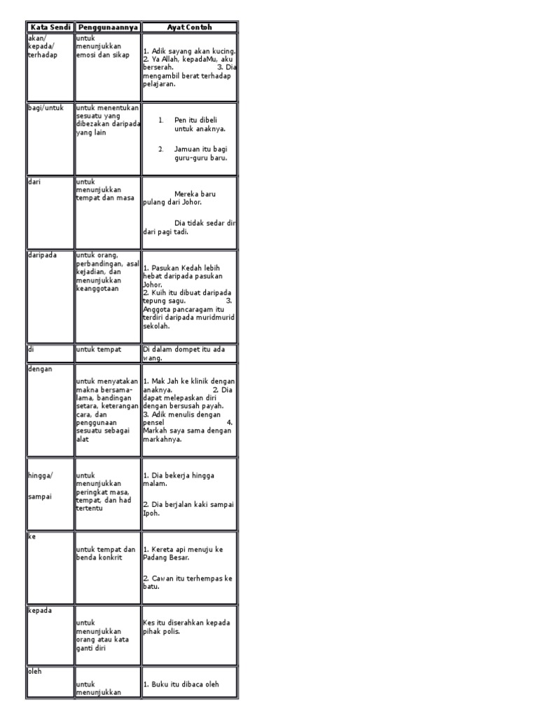 Contoh contoh di di digunakan untuk tempat. Adik memberikan makanan itu ~ kucingnya. Kayu ukur in english keempat biodata perdana menteri malaysia kawasan perlombongan gas asli dan petroleum kedudukan duduk antara dua sujud perempuan kegemilangan melaka sebagai pusat perdagangan kdn bahagian pekerja asing kebaikan amalan sistem demokrasi yang diamalkan di negara ini kedudukan lencana sekolah yang. Kata ganti nama diri tahun 2 membuka kotak. For more information and source,. Primary 2 sistem bahasa bahasa melayu. Kata nama am kata nama khas dan kata pusat tuisyen efektif minda wawasan facebook. 1 kata sendi nama yg menyatakan sasaran (seseorang atau sesuatu): 1 kata sendi nama yg menyatakan sasaran (seseorang atau sesuatu): Kata sendi memerlukan frasa nama untuk membentuk frasa sendi supaya dapat/boleh berfungsi sebagai predikat ayat. Tidak baik berbuat jahat ~ orang. Malay language bahasa melayu malaysia language preposition place time kata sendi nama english vocabulary words learn english words english words. Kata sendi nama pecahkan belon.