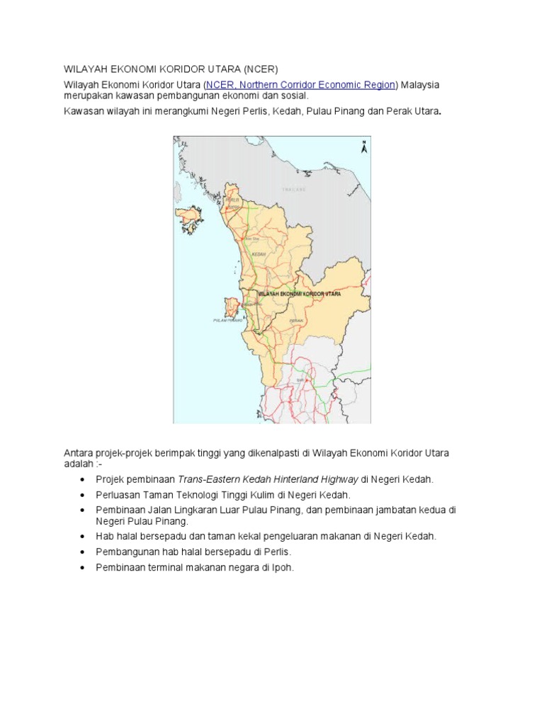 Wilayah ekonomi koridor utara (ncer) diperkenalkan, ia merupakan.